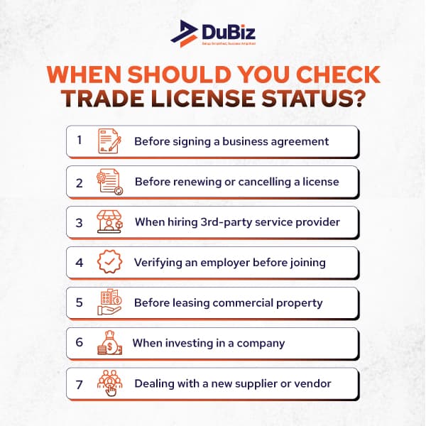 A trade license is one of the main documents that confirms the legal recognition of a company under the UAE’s regulatory framework. Therefore, a trade license check helps confirm whether a business is real and trustworthy. Here are the advantages of regular checks: